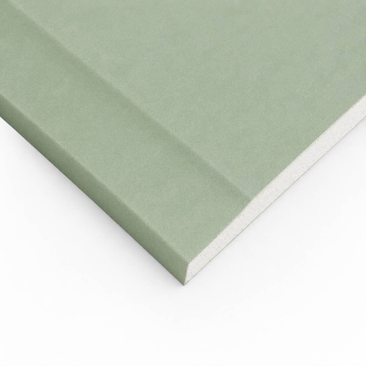 Tapered edge moisture resistant plasterboard is a gypsum lining board for internal areas with higher humidity. Used in partitions, wall linings and ceilings in kitchens, bathrooms and utility spaces. Reduces moisture absorption but is not suitable as a waterproofing material.